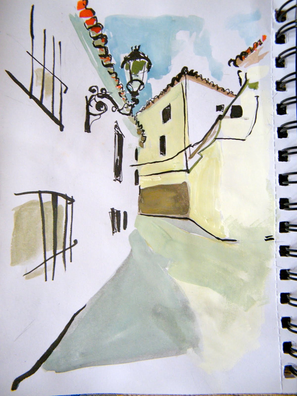 De nuevo dibujando en la almedina de Baena… peleando por sacar los matices de color que marca la sombra en los blancos.