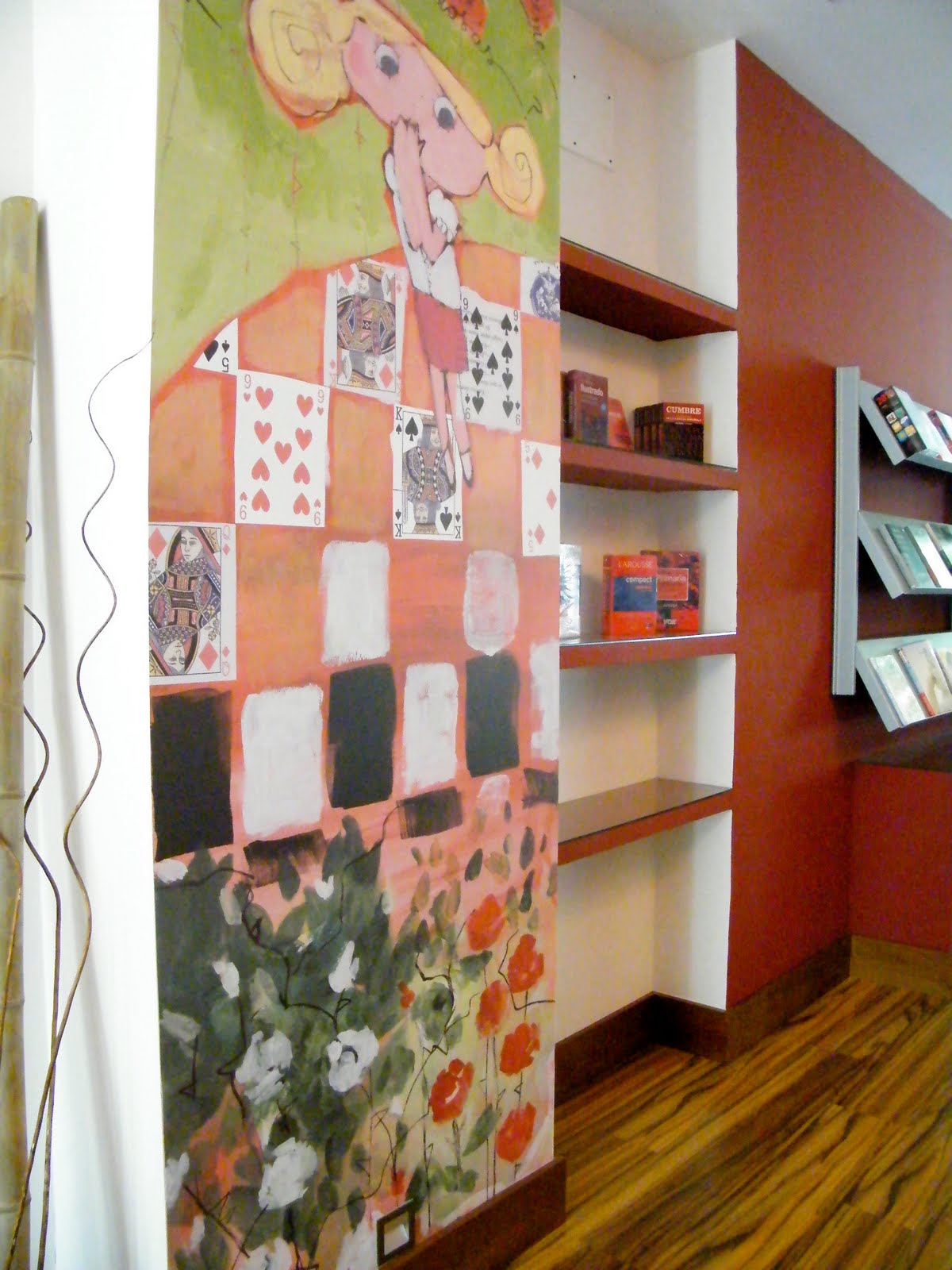 …Unas pocas fotos de cómo quedó la librería de Córdoba con mis dibujos en sus paredes… ¡Gracias Fernando por este trabajo tan bonito!… como siempre, gracias Mi.