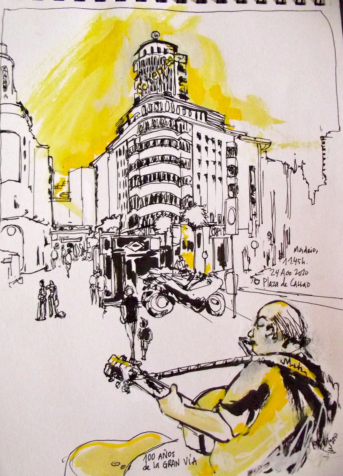 Inma, que bonito dibujo. Me encanta, por Madrid, por la Gran Vía, por el amarillo, por la música.