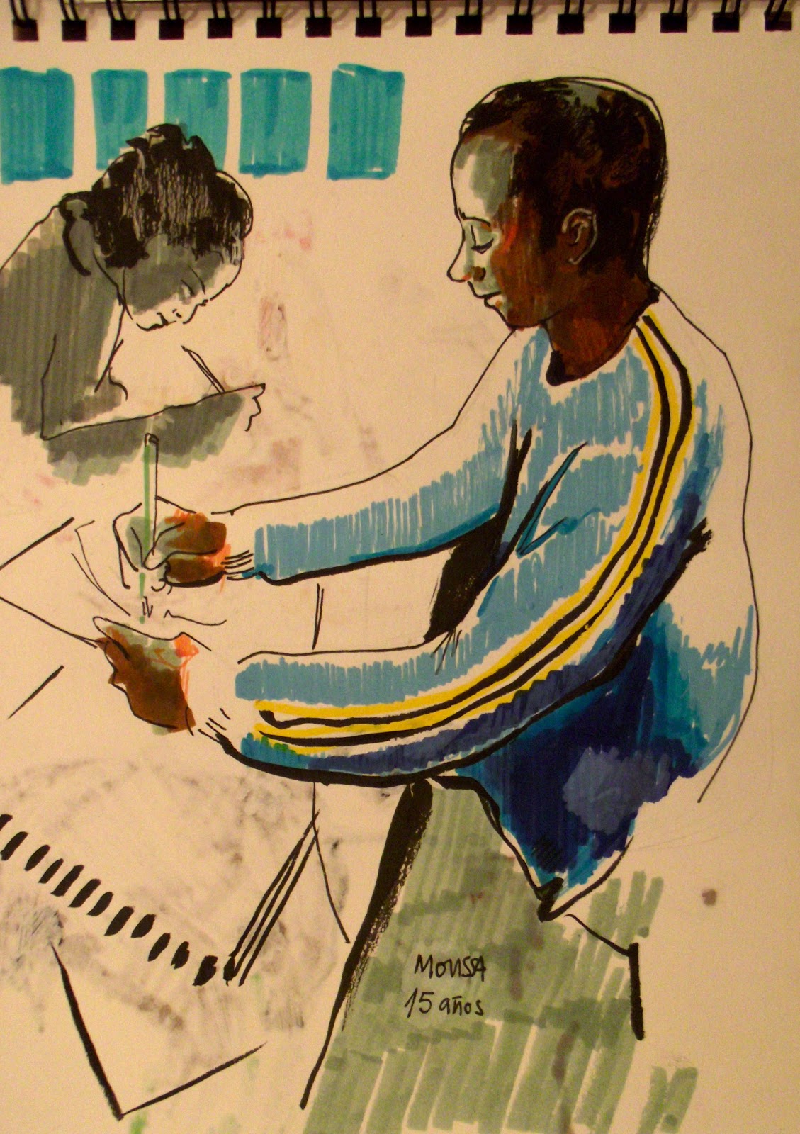 Los momentos más tranquilos los encuentro cuando en el aula de dibujo quedan los pocos alumnos que aparecen estos días, dibujando.