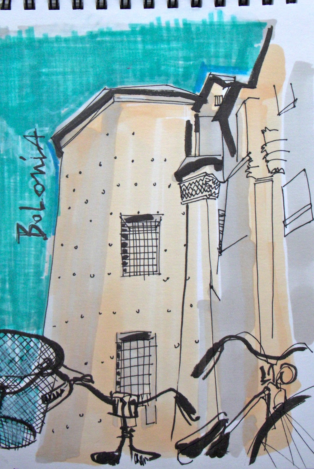 Aprovecho para recordar con estos dibujos mis pasadas vacaciones en Bolonia, la ciudad roja.