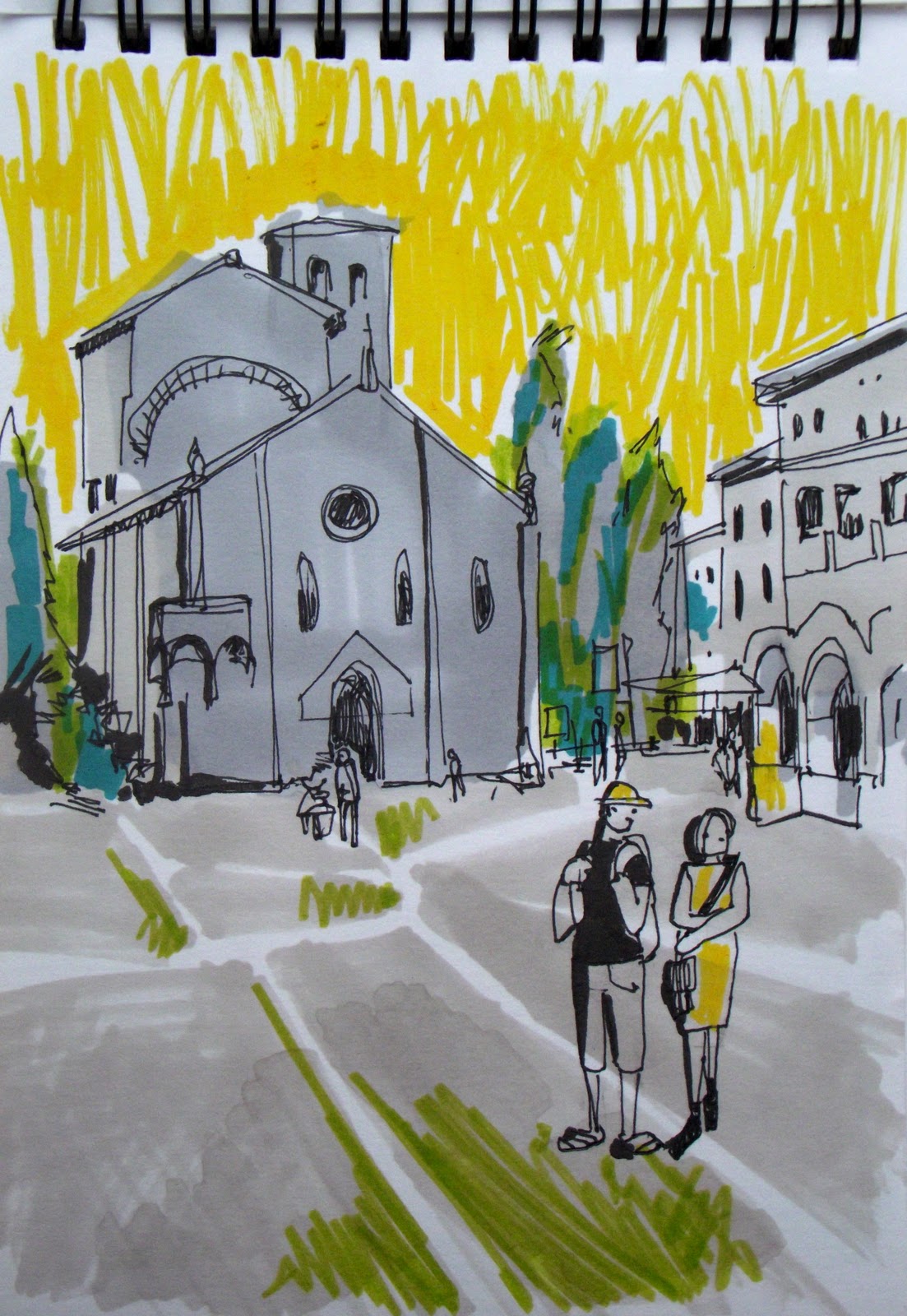 Aprovecho para recordar con estos dibujos mis pasadas vacaciones en Bolonia, la ciudad roja.