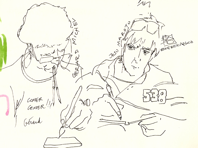 Un tipo fantástico. Aquí aparece dibujando con Josu Maroto (tampoco podéis perderos el trabajo de línea de Josu…)