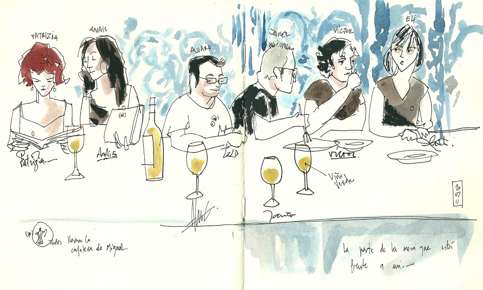 ¡Hola Inma! Me encantan tus dibujos y tu humor, encarnas el espíritu Urban Sketchers que me ha hecho redescubrir el placer de dibujar por ahí. Tu blog es una ventanita abierta a un mundo vibrante y divertido. Qué envidia lo de Lisboa, debería haber ido pero como estoy a punto de un ERE en el curro, pues… cualquiera se atreve en esta situación, pero bueno lo disfruto a cachitos viendo vuestras cosas. Qué pasada el homenaje de Omar en el blog, la verdad es que os estaba mirando y he salido corriendo a comprar unas pastillitas de acuarela nuevas…