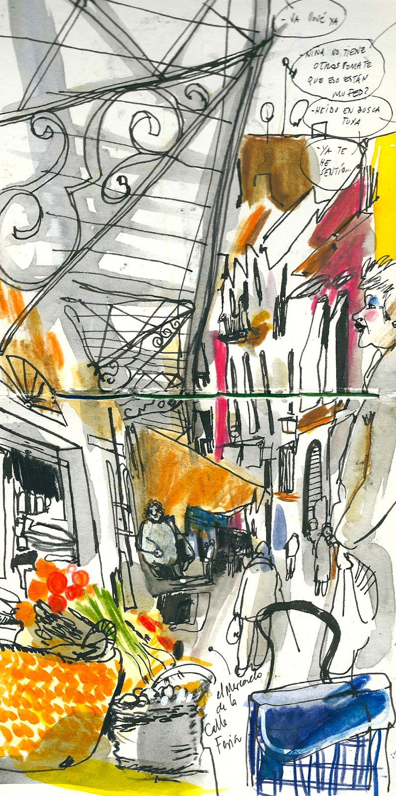 El mercado de la calle Feria estaba a rebosar de gente esta mañana: Colores intensos, movimiento, vida en la calle. Se puso a llover y nos tuvimos que marchar de allí.